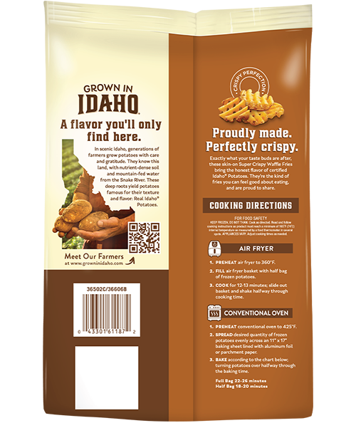 These fun-shaped fries begin with real Idaho® Potatoes before being sliced into corrugated discs. They bake up hot and crispy on the outside and tender on the inside and boast the same great taste and texture as the popular waffle-style fries at your favorite fast food restaurants.