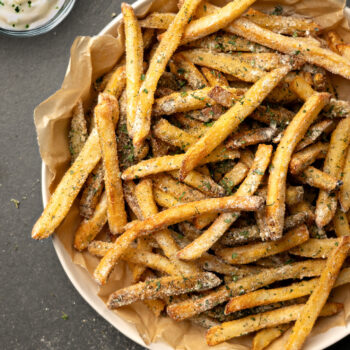 Once fries are hot and crispy, toss immediately in the ranch seasoning until evenly coated. Serve warm and enjoy the bold, herby flavor.